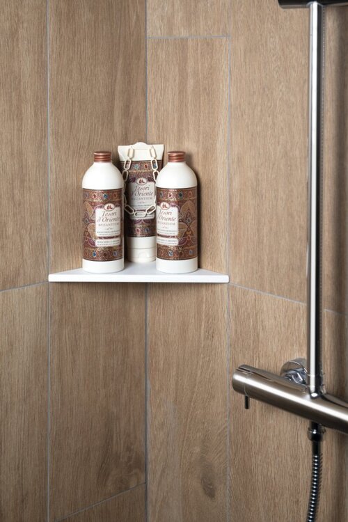Polica sa dodáva so samolepiacimi podperami, ktoré sa dajú po zatvrdnutí lepidla odstrániť.
