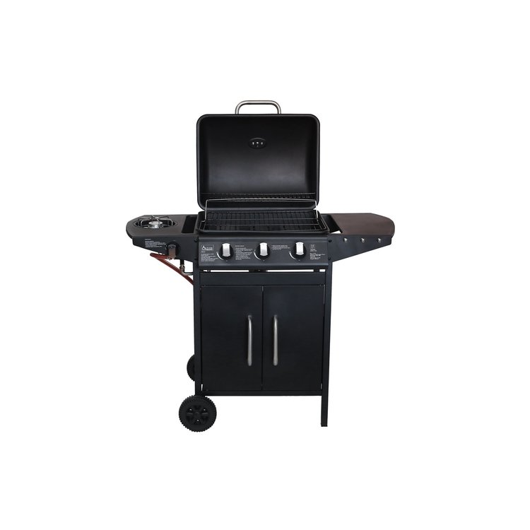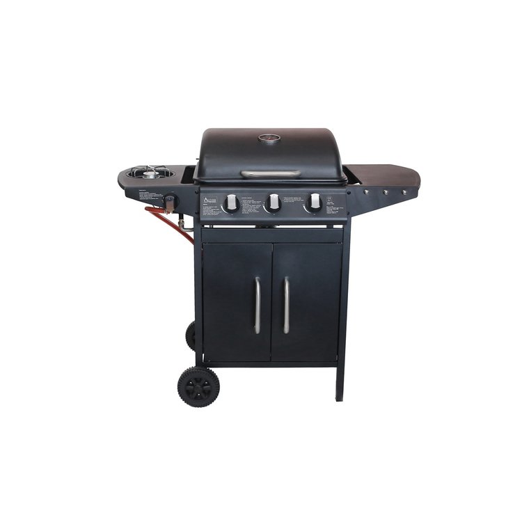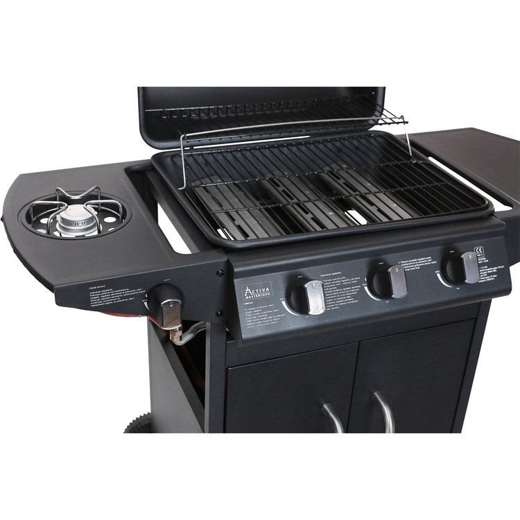 Praktický, kompaktní a cenově dostupný plynový gril California se skvěle hodí pro menší a středně velké grilovací párty a rodinné oslavy. Dokáže najednou snadno obsloužit 8 až 10 osob. Německá společnost Activa tento gril vybavila vším potřebným pro zdravé a pohodlné grilování. Má tři výkonné ploché hořáky z nerezu, což má výrazný vliv na jejich životnost. Každý hořák má horní kryt a odtok, díky kterému je odkapávající tuk veden mimo plamen. Pokrm tak bude vždy zdravý bez zbytečných škodlivých prvků, které vznikají přepalováním tuku. Gril rovněž má praktický integrovaný boční vařič vhodný na přípravu omáček, horkých nápojů nebo příloh. Hořáky se pohodlně zapalují pomocí piezo zapalování integrovaném v každém z otočných knoflíků. Gril je dále vybaven kvalitním smaltovaným grilovacím roštem a dalším vyklápěcím roštem, který je vhodný na nepřímé grilování masa či zeleniny anebo na ohřívání již ugrilovaných pokrmů. Gril má kvalitně lakované víko s hliníkovým madlem a zabudovaným teploměrem, odkládací poličku na pravé straně a praktický odkládací prostor pod grilem, který je přístupný dvířky zepředu. Pro snadný transport je vybaven velkými kolečky. Na rozdíl od mnoha jiných grilů je již v základu vybaven vším potřebným pro připojení k plynové lahvi 5 nebo 10 kg.