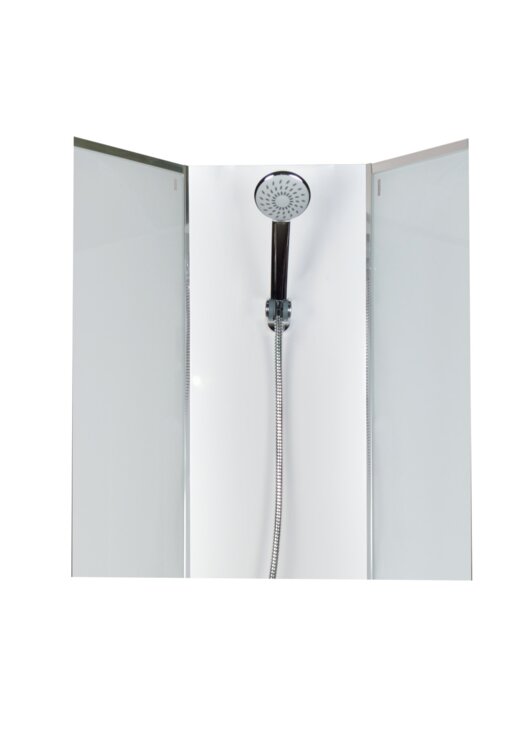 Super biela nepriehľadná zadné sklá a predné výplň z 5mm bezpečnostného skla v leštenom hliníkovom profile zaistí Vašej kúpeľni elegantný vzhľad.