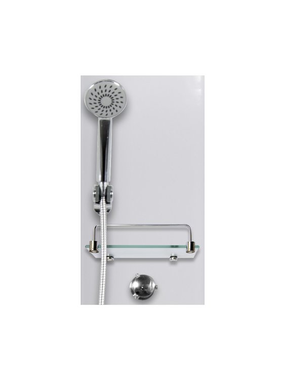V zadnom laminátovom paneli je umiestnená batéria s ručnou sprchou.
