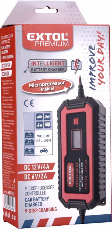 Určená na nabíjanie 6V a 12V bezúdržbových olovených akumulátorov so zaplavenou elektródou (PbWet aj PbCa), AGM, gélových a 12V LiFePO4 akumulátorov. Využíva automatický prepínací mód s vysokou frekvenciou. Vstavaný mikroprocesor v deviatich predprogramovaných fázach procesu zaistí nabitie batérií až na 100% ich originálnej kapacity. Nabíja a zachraňuje vyčerpané batérie. Umožňuje automatické, alebo voliteľné oživenie čiastočne sulfátovaných batérií. Má ochranu proti prebíjaniu, prehriatiu, skratu a prepólovaniu. Pri výpadku napájania si zapamätá nastavený typ nabíjania a po opätovnom zapnutí ho nastaví. Nabíjačka je veľmi flexibilná v spôsobe pripojenia batérií a je vybavená 4 rôznymi koncovkami: klasické krokosvorky, očká, SAE konektor a 12V autozásuvka.