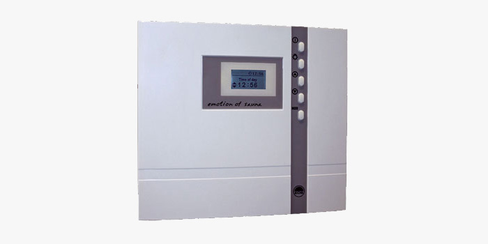 elektronická riadiaca jednotka EOS H1 s 24-hodinovými hodinami reálneho času. Rozsah regulácie je od 40 do 115 stupňov C. Pri použití odparovača je možné dosiahnuť teploty medzi 30 a 70 stupňami C. Ovládanie má 5-stupňový cyklus vlhkosti s funkciou detekcie a opätovného ohrevu vody. K dispozícii je tiež časový limit elektrického vykurovania. Na displeji sa zobrazuje čas, teplota, vlhkosť a zostávajúci čas. Integrovaná je aj detská poistka a bezpečnostný obmedzovač teploty. Ovládač je možné namontovať na bočnú stranu sauny z vonkajšej strany, na stenu alebo čiastočne integrovaný do steny.