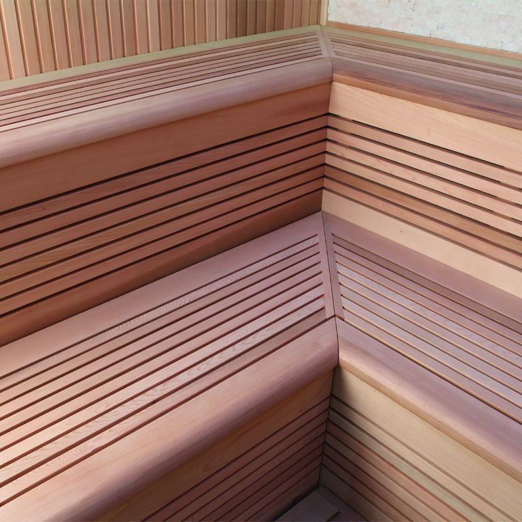 Červený céder pochádza z Kanady a obsahuje aromatický olej, ktorý má počas používania dezinfekčný účinok. Podporuje tiež odtok prebytočných telesných tekutín. Červené cédrové drevo je jedinečné, pretože farebné spektrum sa líši od svetlej medovej farby po sýtu farbu vlašských orechov. Pretože červený céder je mäkký druh dreva, nereaguje na výkyvy vysokej teploty.