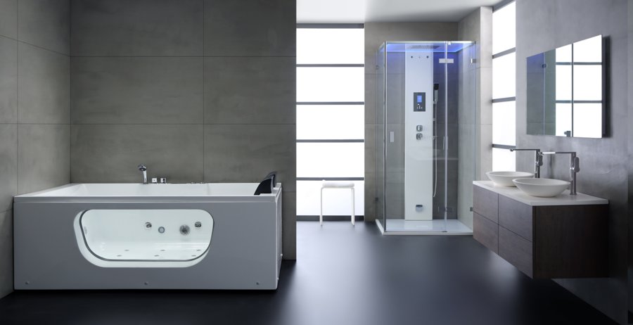 12 hydro trysiek (6 nastaviteľných turbo trysiek, 6 masážnych trysiek v zadnej časti) v stene