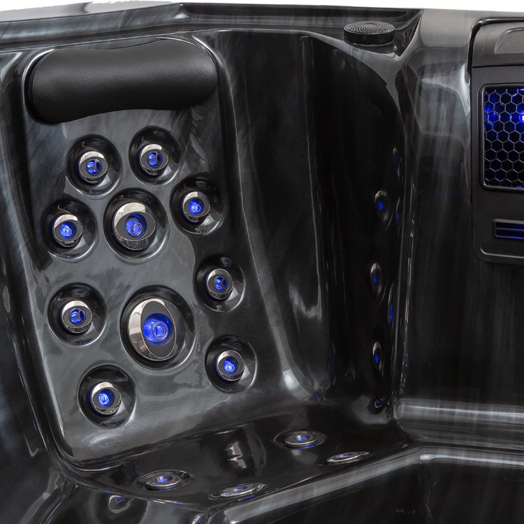 So svetelným a dizajnovým paketom vám naša séria Eco eXtreme ponúka širokú škálu osvetlených prvkov, vďaka ktorým je kúpanie v SPA skutočným pôžitkom, najmä v noci. Počnúc farebným osvetlením všetkých trysiek, všetkých ventilov, ovládačov a vodopádu sú ďalšie malé LED diódy pripevnené pod opierkami hlavy, v oblasti filtra a nad vonkajším okrajom vašej vírivky. Prostredie ako stvorené na oddych a snívanie.