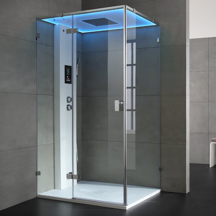 Séria F15 je najnovšia a najinovatívnejšia séria parných spŕch od EAGO Germany. Nami vyvinutá séria predávaná pod názvom AWT (Aqart Water Technology) vyčnieva od zvyšku trhu svojim dizajnom a veľmi dobrou funkčnosťou. Keďže sme sa pri vývoji obmedzili na to najpodstatnejšie, veľa sa dávalo do detailov. Výsledkom je jednoduchá, nadčasová a veľmi elegantná parná sprcha, ktorá sa ľahko používa a napriek tomu ponúka všetko, čo si môžete priať. Vďaka absencii zadnej steny je možné tento model perfektne začleniť do vašej kúpeľne a so stojacou výškou 200 cm je vhodný aj pre vysokých ľudí.