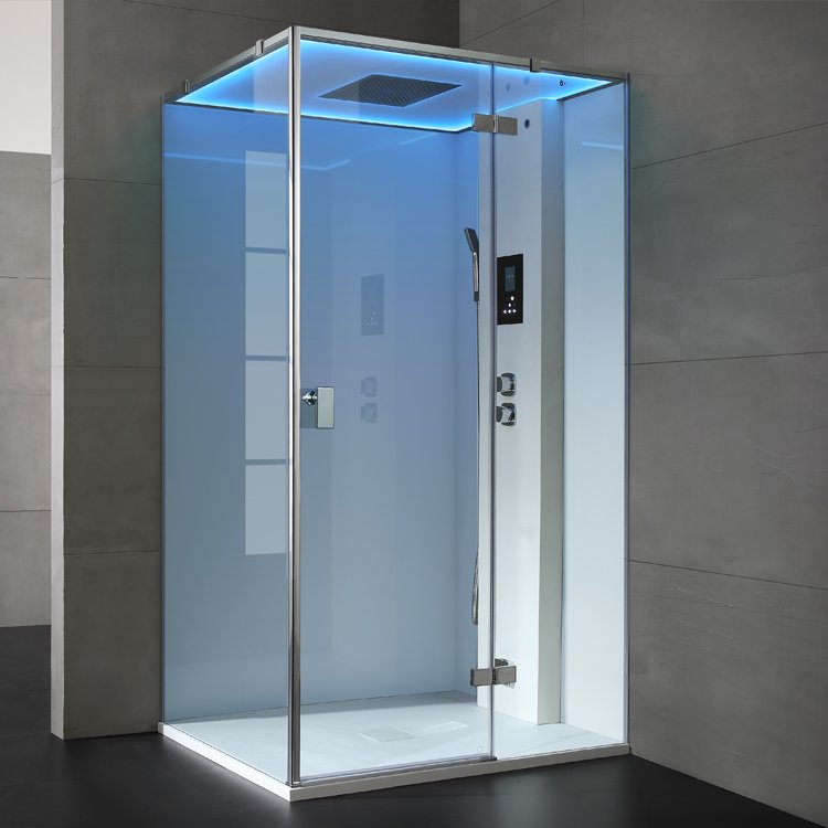 Séria F15 je najnovšia a najinovatívnejšia séria parných spŕch od EAGO Germany. Nami vyvinutá séria predávaná pod názvom AWT (Aqart Water Technology) vyčnieva od zvyšku trhu svojim dizajnom a veľmi dobrou funkčnosťou. Keďže sme sa pri vývoji obmedzili na to najpodstatnejšie, veľa sa dávalo do detailov. Výsledkom je jednoduchá, nadčasová a veľmi elegantná parná sprcha, ktorá sa ľahko používa a napriek tomu ponúka všetko, čo si môžete priať. Tu ponúkaná verzia je dodávaná so zadnou stenou a je vhodná aj pre vysokých ľudí s výškou stoja 200 cm.