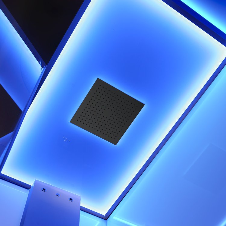 Náš nový ovládací panel F15 je navrhnutý tak, aby sa dal veľmi ľahko používať. V centre pozornosti je samozrejme funkcia parnej sauny s výberom teploty a času. Okrem toho ponúkame ďalšie funkcie, ako je dezinfekcia ozónom a funkcia čistenia a odvápnenia. Jedinečná je pre tento model obloha s nepriamym osvetlením. Farebné svetlo sa nemení prudko (ako pri iných modeloch), ale ponúka plynulé prechody.