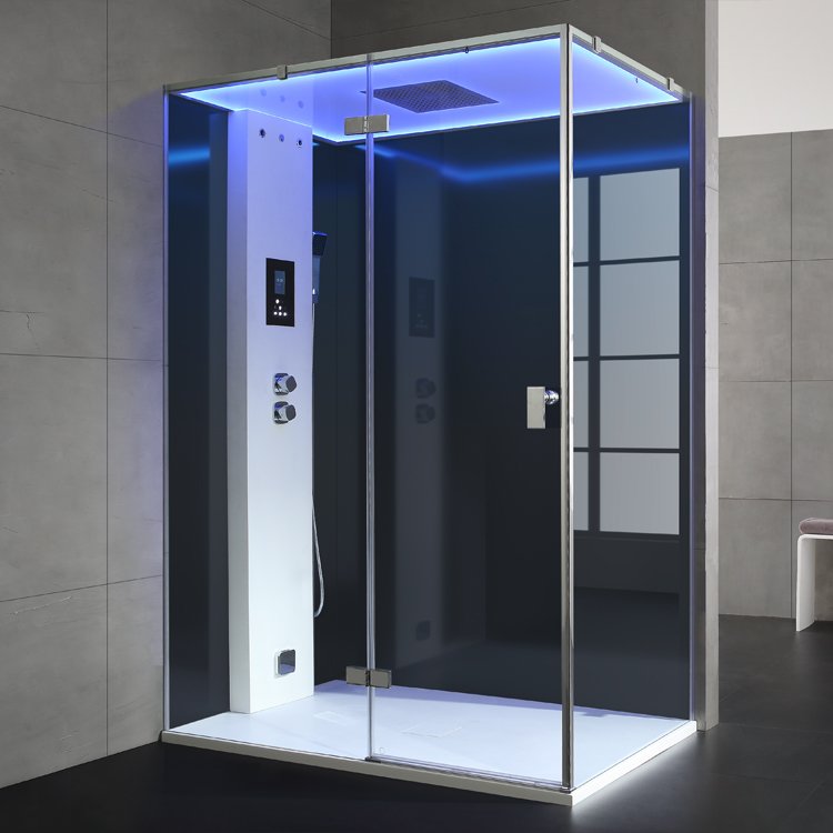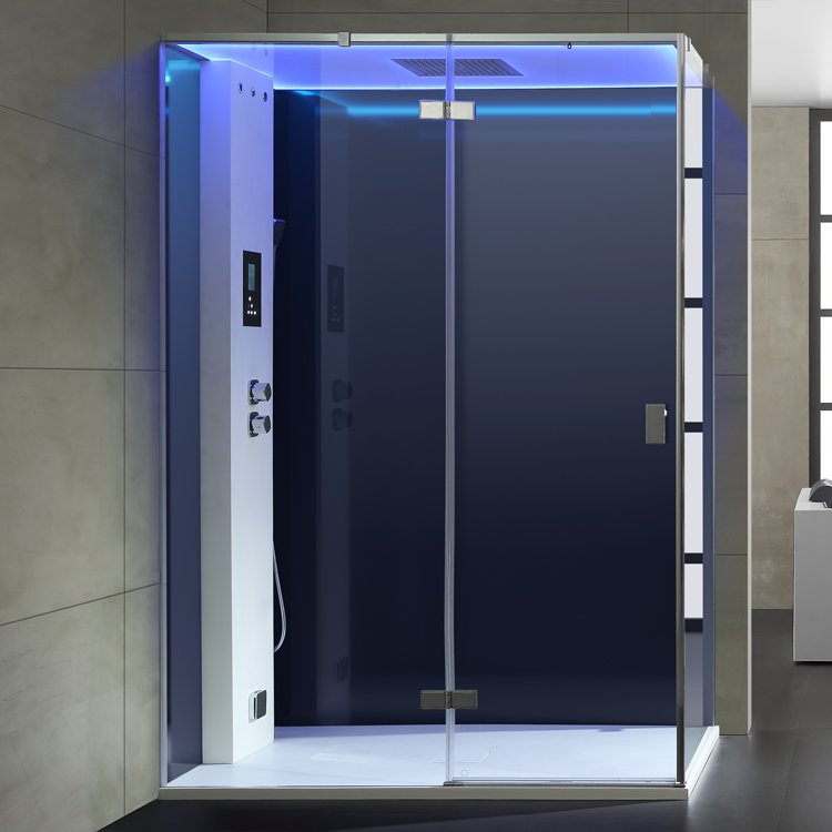 Séria F15 je najnovšia a najinovatívnejšia séria parných spŕch od EAGO Germany. Nami vyvinutá séria predávaná pod názvom AWT (Aqart Water Technology) vyčnieva od zvyšku trhu svojim dizajnom a veľmi dobrou funkčnosťou. Keďže sme sa pri vývoji obmedzili na to najpodstatnejšie, veľa sa dávalo do detailov. Výsledkom je jednoduchá, nadčasová a veľmi elegantná parná sprcha, ktorá sa ľahko používa a napriek tomu ponúka všetko, čo si môžete priať. Tu ponúkaná verzia je dodávaná so zadnou stenou a je vhodná aj pre vysokých ľudí s výškou stoja 200 cm.