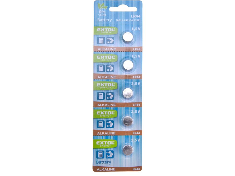 Batéria LR44 alkalická 5ks, 1,5V, typ AG13, A76F, LR1154, V13GA, PX76A