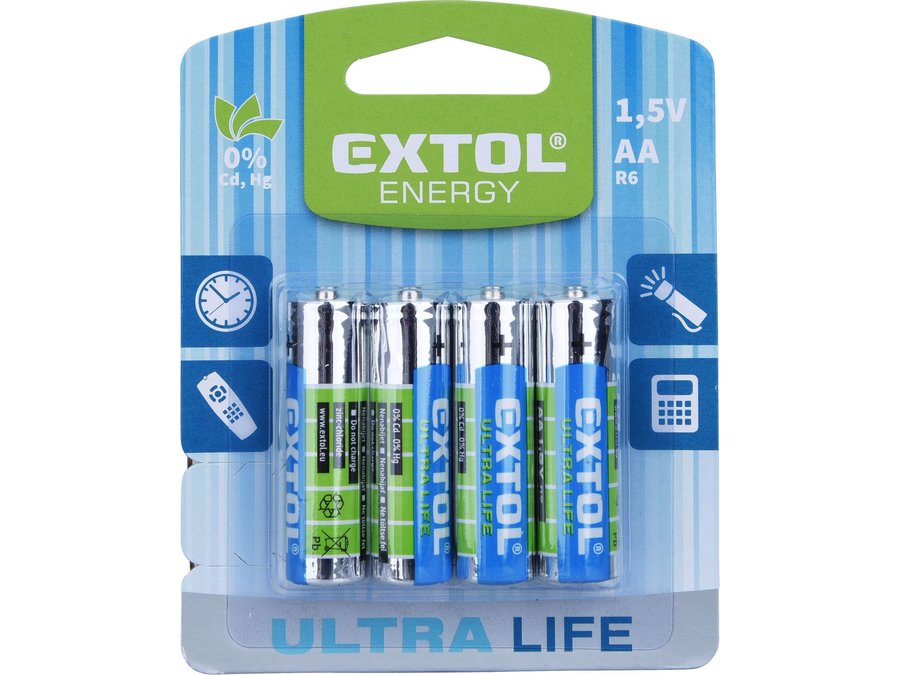 Batéria zink-chloridová 4ks, 1,5V, typ AA, EXTOL ENERGY