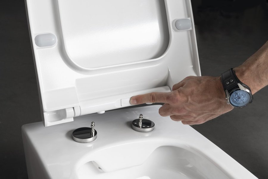 Jednoduché vybratie a upevnenie sedátka: stlačením postranných pántov alebo tlačidla (pri niektorých modeloch jednoduchým uvedením sedátka do kolmej polohy), je možné sedátko sňať z pántov (podľa typu obr. 1a, 1b, 1c) a po umytí následne jednoduchým zacvaknutím opäť nasadiť (obr. 2).
