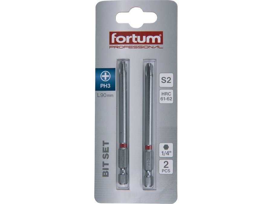 Bit krížový 2ks, PH 3x90mm, S2, FORTUM