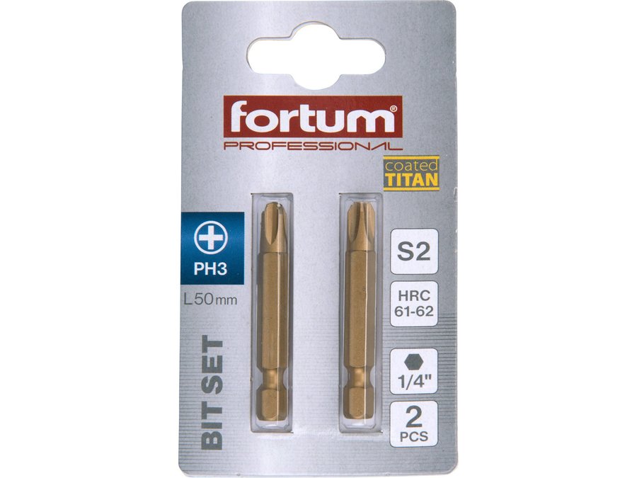 Bit krížový 2ks, PH 3x50mm, S2, FORTUM