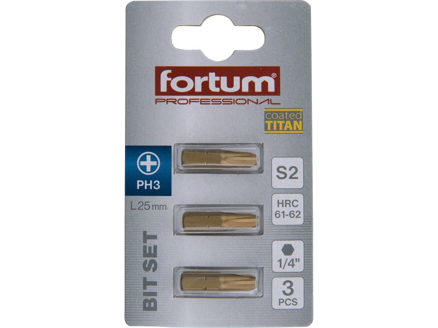 Bit krížový 3ks, PH 3x25mm, S2, FORTUM