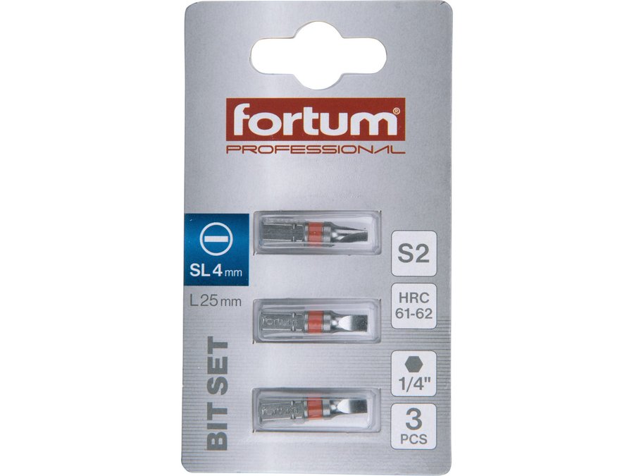 Bit plochý 3ks, 4x25mm, S2, FORTUM