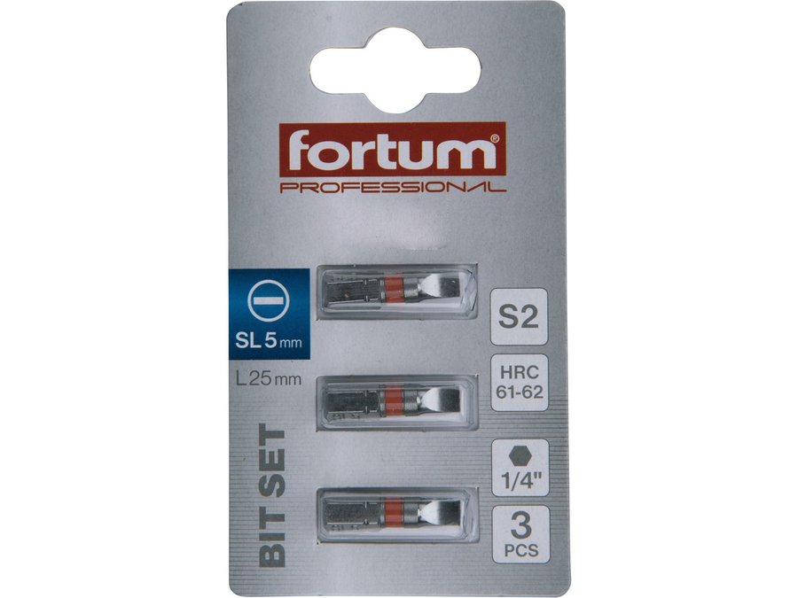 Bit plochý 3ks, 5x25mm, S2, FORTUM