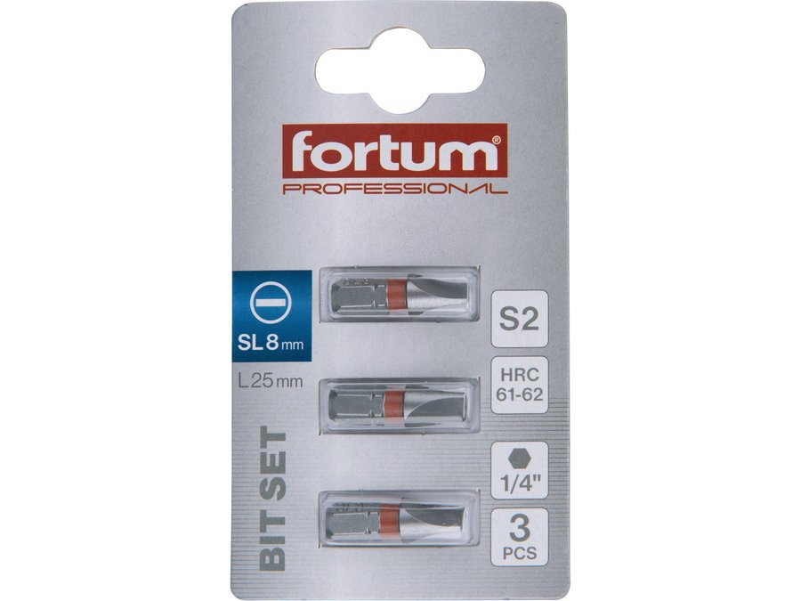 Bit plochý 3ks, 8x25mm, S2, FORTUM