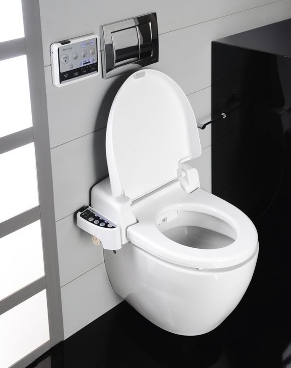 Elekronický bidet Blooming NB-R770 s diaľkovým ovládaním pre Vašu každodennú hygienu, maximálne pohodlie, zdravie a životný štýl. Bidet ponúka všetky funkcie spŕšky, vrátane pulzného oplachu a kmitavého pohybu trysky. Samozrejmosťou je individuálne nastavenie polohy trysky, tlaku a teploty vody, teplovzdušné sušenie, vyhrievané sedadlo, automatické čistenie trysiek atď. Ponúka aj nadštandardné funkcie, ako je automatické nočné LED osvetlenie, ktoré oceníte predovšetkým v noci; super úsporný režim, ktorý šetrí el. energiu; funkcia odsávania pachov, ktorá sa aktivuje pri dosadnutí a diaľkovom ovládači pre maximálne pohodlie. Najpodstatnejší je však "D" tvar sedadla, ktorý je prispôsobený európskemu trhu a zariadenie tak pasuje na väčšinu toaliet európskych výrobcov.