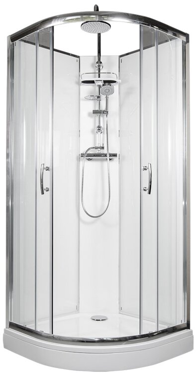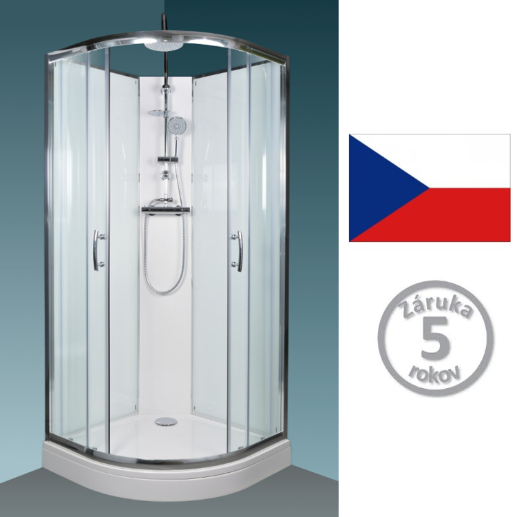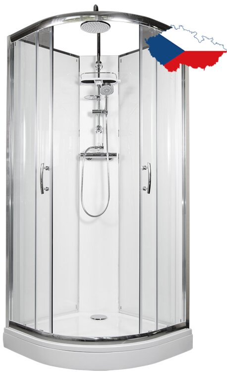 Sprchový box ARTTEC BRILIANT THERMO MODEL 6 clear, vlastnej výroby, s posuvnými dverami štvrťkruhový sa vyznačuje vysokou kvalitou a jednoduchým dizajnom. Pre komfortné sprchovanie ponúka vo výbave TERMO SET, ktorý sa skladá z TERMO batérie, ručné sprchy na posuvnom držiaku, horné sprchy a mydlovničky. Súčasťou sprchového boxu je tiež polička na šampón a vanička z liateho mramoru.