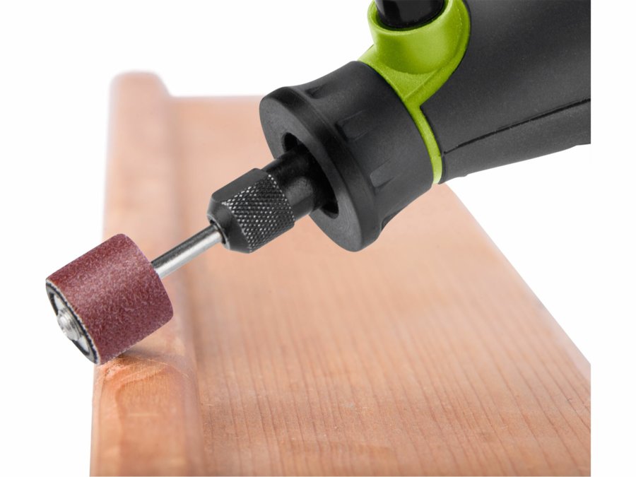 Malá brúska s príslušenstvom určená na jemné gravírovacie práce, precízne opracovanie dreva, kovu či plastov a prácu v stiesnených priestoroch. Má ergonomický tvar a v miestach úchytu je pokrytá gumou. Stroj umožňuje výmenu a montáž upínacích klieštin na uchytenie nástrojov s priemerom stopky 3 alebo 3,2mm. Súčasťou balenia je sada 40 kusov brúsnych a rezacích nástrojov a nadstavcov.