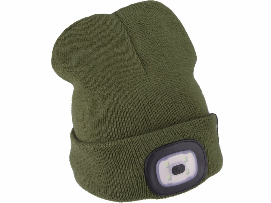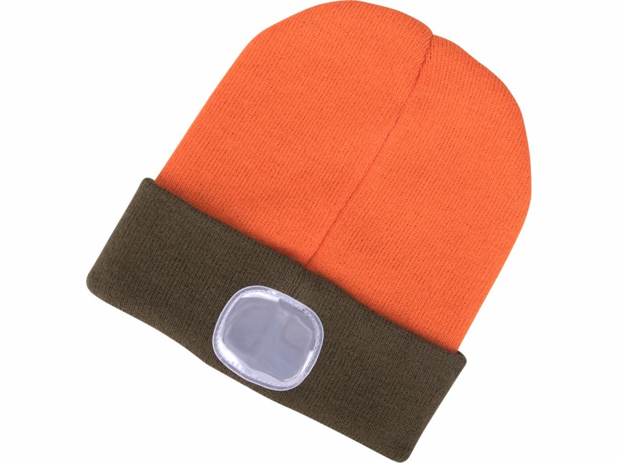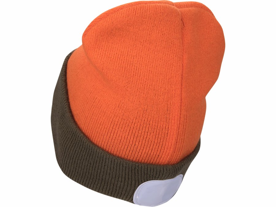 Čiapka oranžová/kaki zelená s čelovým svetlom, obojstranná, LED 4x45lm, 300mAh Li-ion, nabíjanie cez