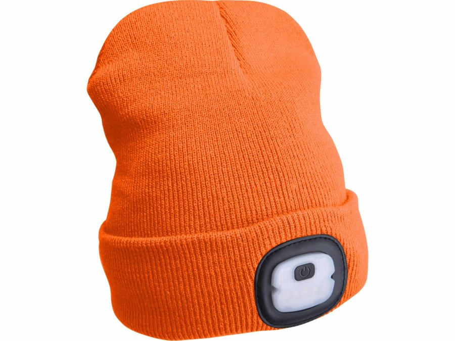 Čiapka oranžová s čelovým svetlom, LED 4x25lm, 250mAh Li-ion, nabíjanie cez USB, EXTOL LIGHT