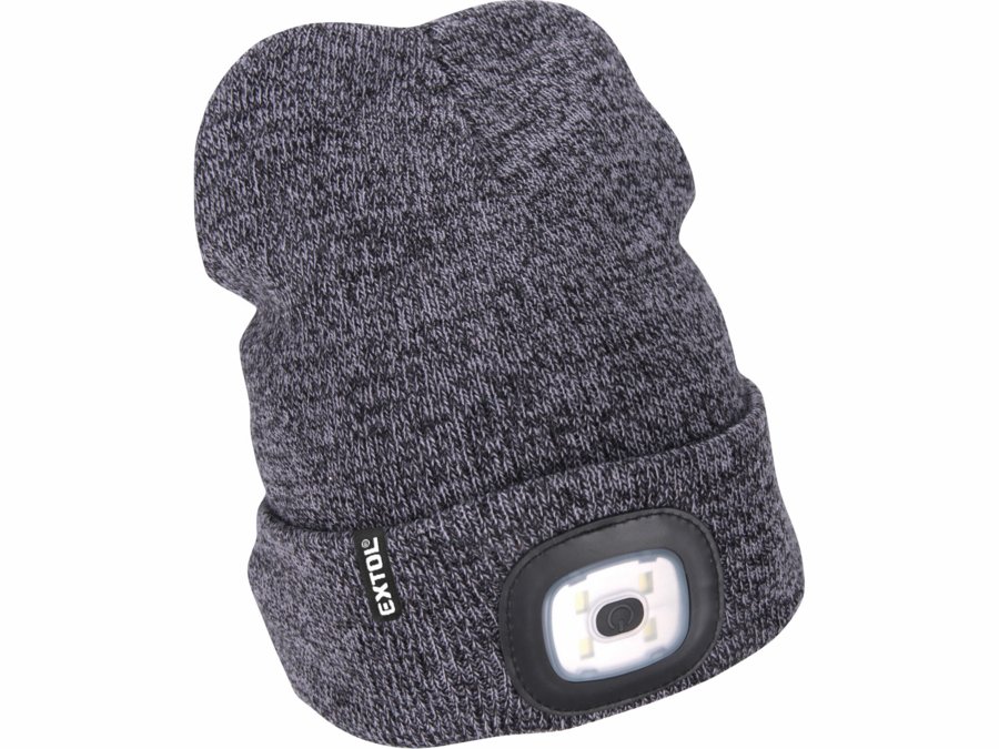 Čiapka sivá/čierna s čelovým svetlom, LED 4x45lm, 300mAh Li-ion, nabíjanie cez USB, EXTOL LIGHT