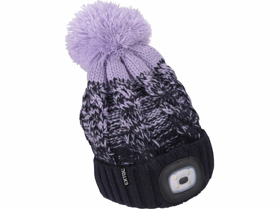 Čiapka tmavo-modrá/fialová s čelovým svetlom, LED 4x45lm, 300mAh Li-ion, nabíjanie cez USB, EXTOL LI