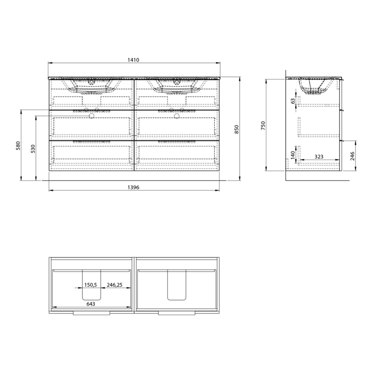 Nábytok je vybavený pojazdy zásuviek s pomalým dojazdom a systémom automatického dovretí zásuviek. Už žiadne hlučné zatváranie.