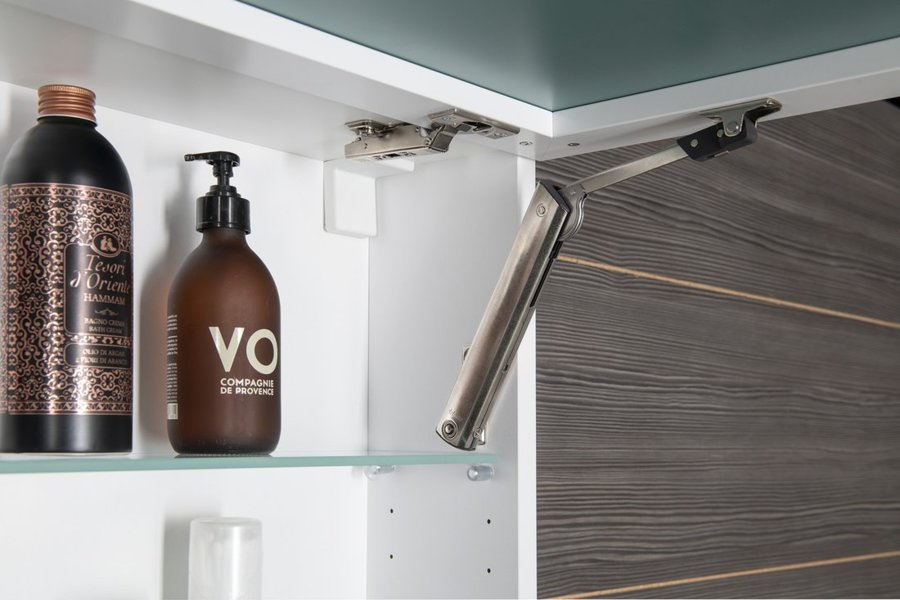 Nábytok je vybavený mechanizmom spomaľovacích pántov u dvierok. Stačí dvierka len ľahko postrčiť a ony sa už samy dovrou.