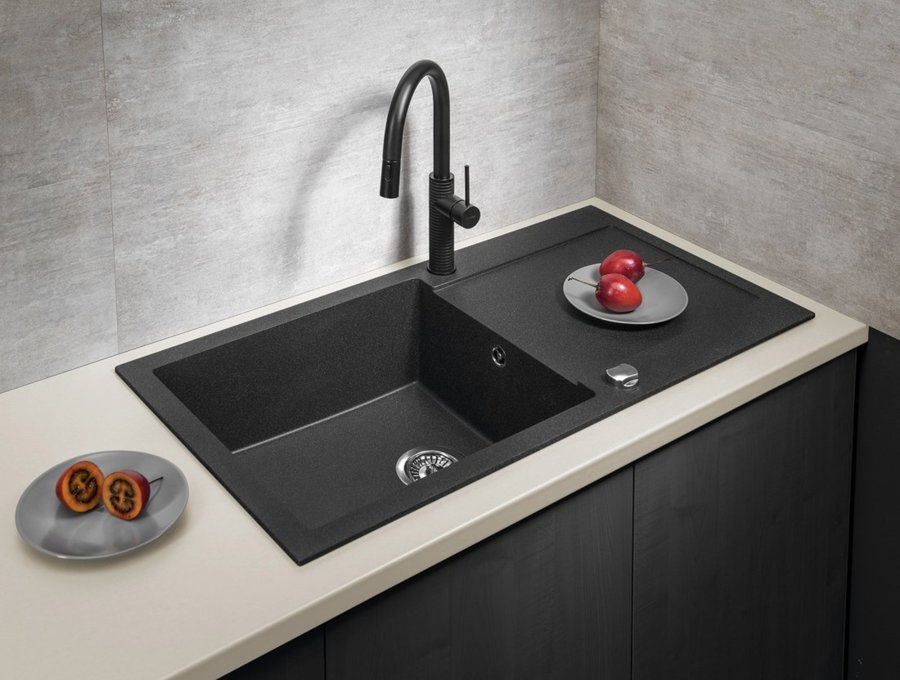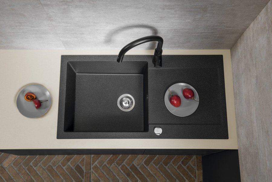 Drez je usadený na pracovnú dosku a hranou ju prevyšuje. |