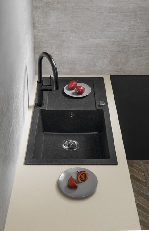 Špeciálne zloženie materiálu použitého na výrobu (kamenná drvina, napr. kremičitého piesku - žuly a polymérovej živice) a jeho vysoká hustota garantuje bezpečné používanie výrobku, a preto sú granitové drezy tak obľúbené. Na granitovom dreze nie sú vidieť zaschnuté kvapky, je odolný voči škvrnám a nestráca farbu. Povrch je odolný proti poškriabaniu a odoláva teplotám až do 180 °C. Pri ich údržbe sa používajú obvyklé čistiace prostriedky alebo prostriedky na riad s jemným abrazívom. Výhodou je rozmanitá farebná ponuka.