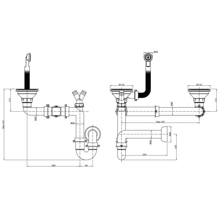 | Balenie obsahuje | Šablóna pre výrez, Sifón s odbočkou na práčku/umývačku, Výpust bez excentrického ovládania |
