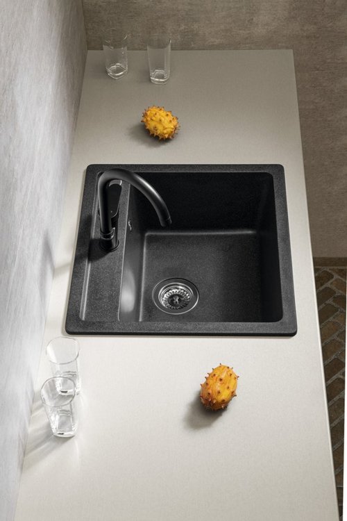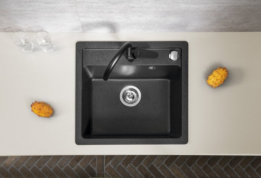 Drez je usadený na pracovnú dosku a hranou ju prevyšuje. |