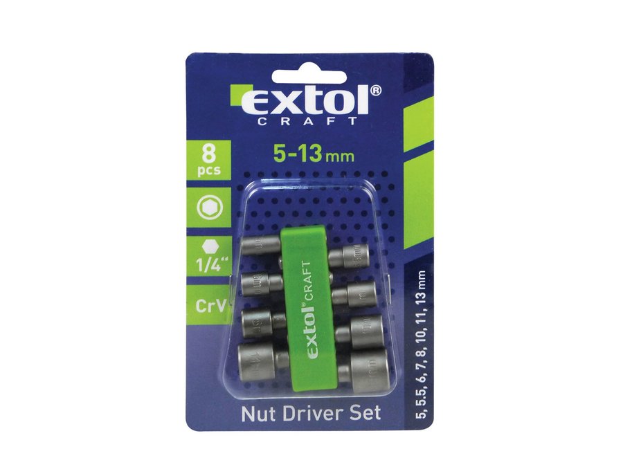 Hlavice nástrčné so 6-hrannou stopkou 1/4“, 8-dielna sada, EXTOL CRAFT