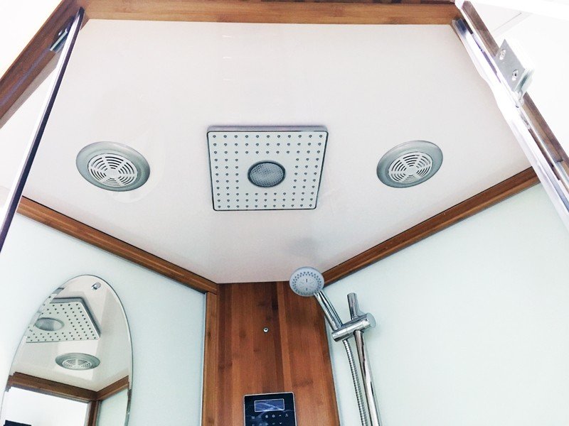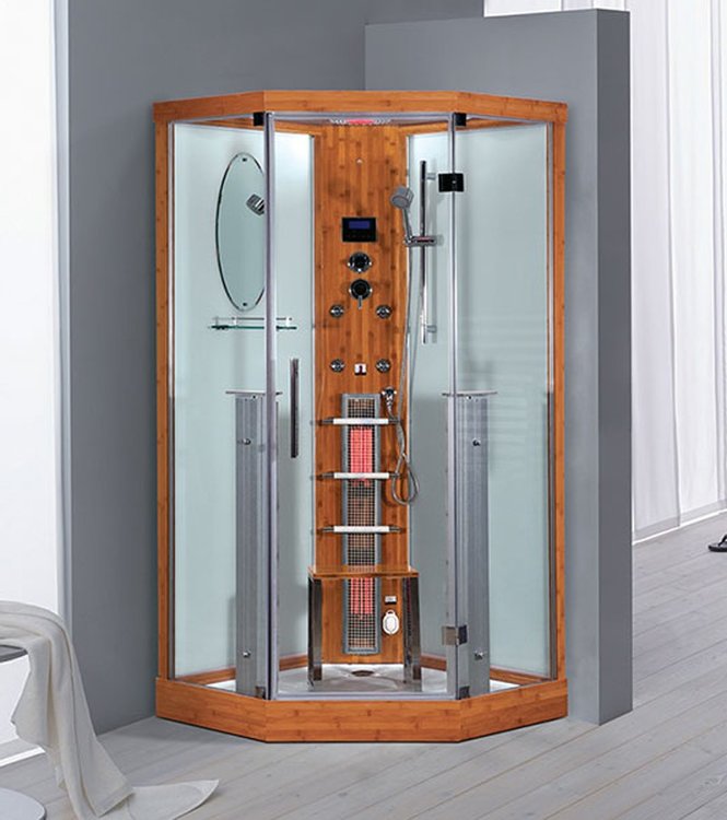 Model Kos je vyrobený z bambusového dreva, akrylu a skla. Je vybavený parným generátorom a infračervenými žiaričmi. Okrem dažďovej sprchy nájdete samozrejme aj ručnú sprchu.