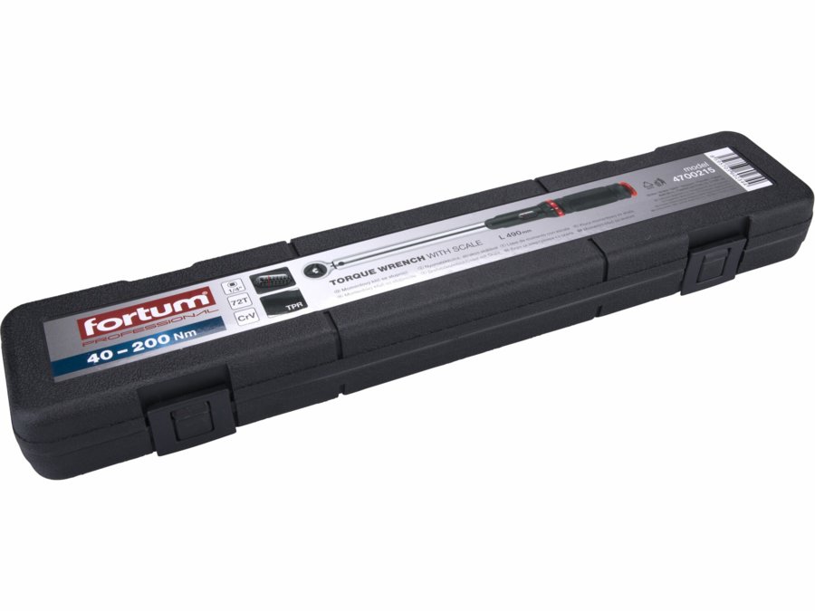 Kľúč momentový so stupnicou, 1/2", 40-200Nm, dĺžka 490mm, FORTUM