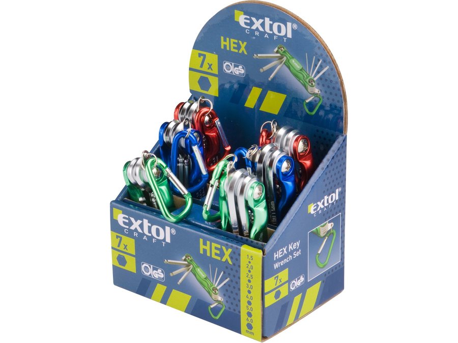 Kľúče imbusové skladacie s guľôčkou, 7-dielna sada, 1,5-6mm, karabína, mix farieb