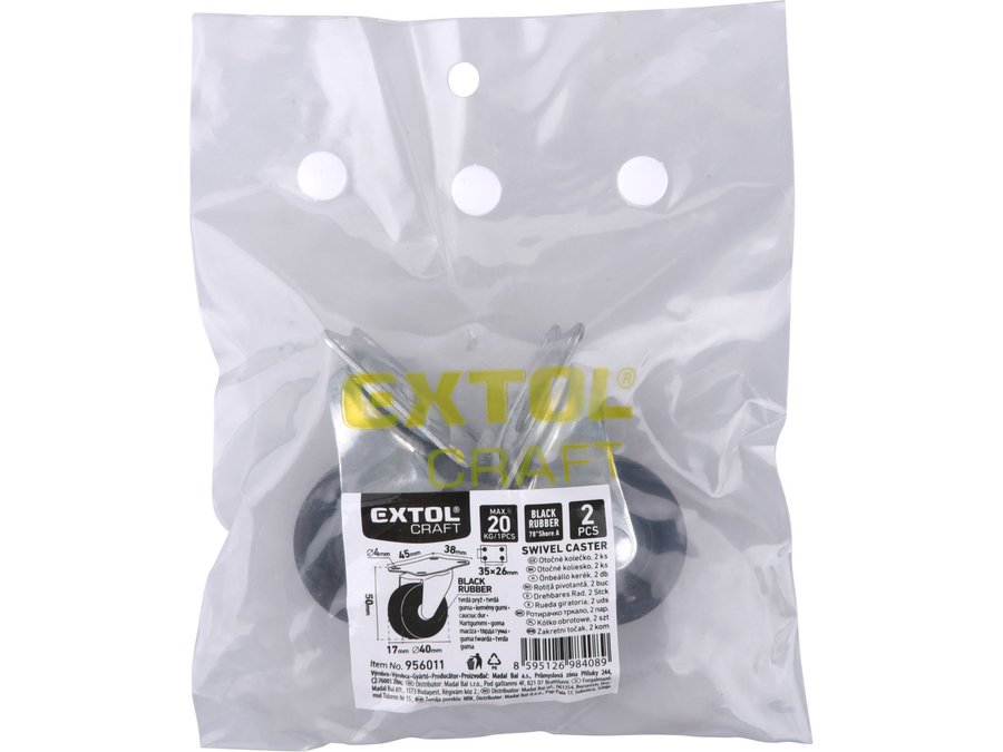 Kolieska otočné 2ks, Ø40mm, max. 20kg/1ks, EXTOL CRAFT