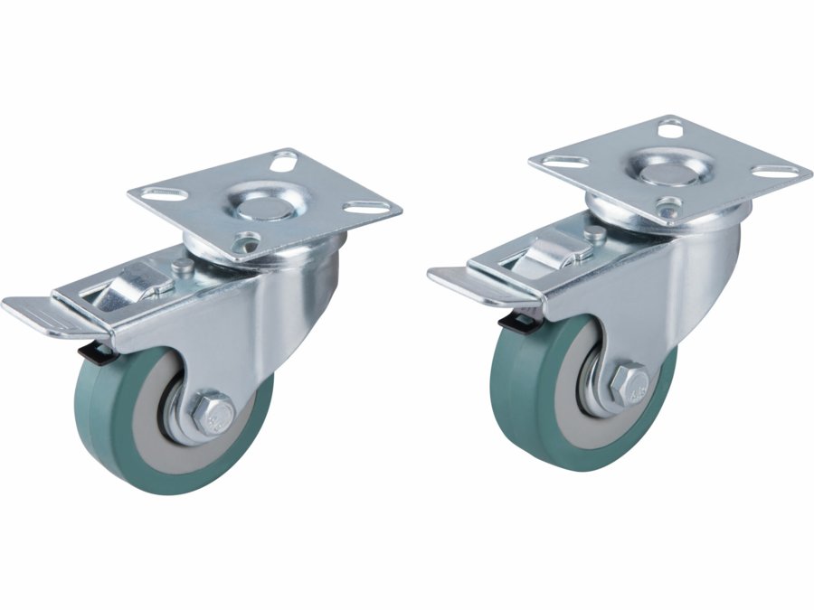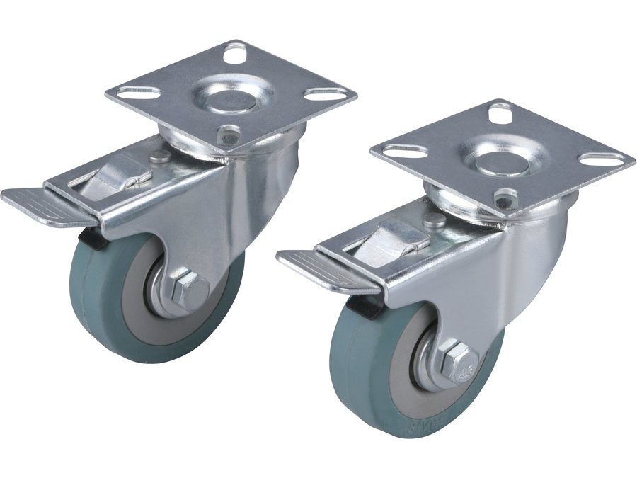 Koliesko nábytkové otočné 50mm s brzdou, 2ks, gumenné, šedé