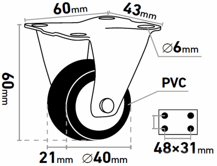 Koliesko nábytkové pevné 40mm, 2ks, PVC, čierne