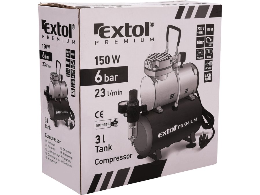 tichý kompresor určený predovšetkým pre striekacie pištole (airbrush) a daľšie vzduchové náradie ako sponkovačky, ofukovačky atď., je tiež vhodný pre hustenie pneumatík bicyklov i automobilov.
