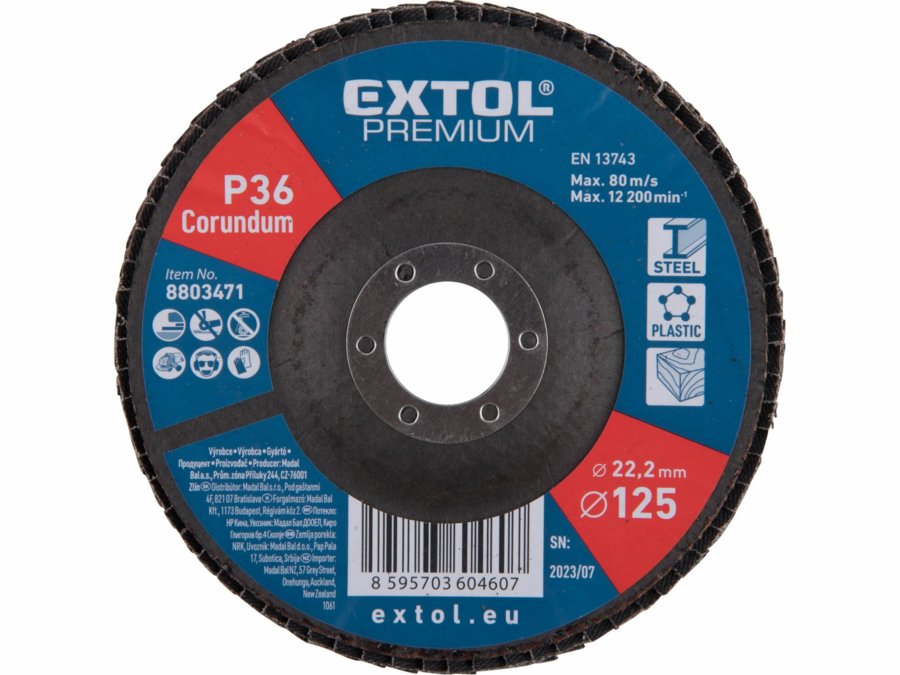Kotúč lamelový šikmý korundový, P36, 125mm, diera 22,2mm, EXTOL PREMIUM
