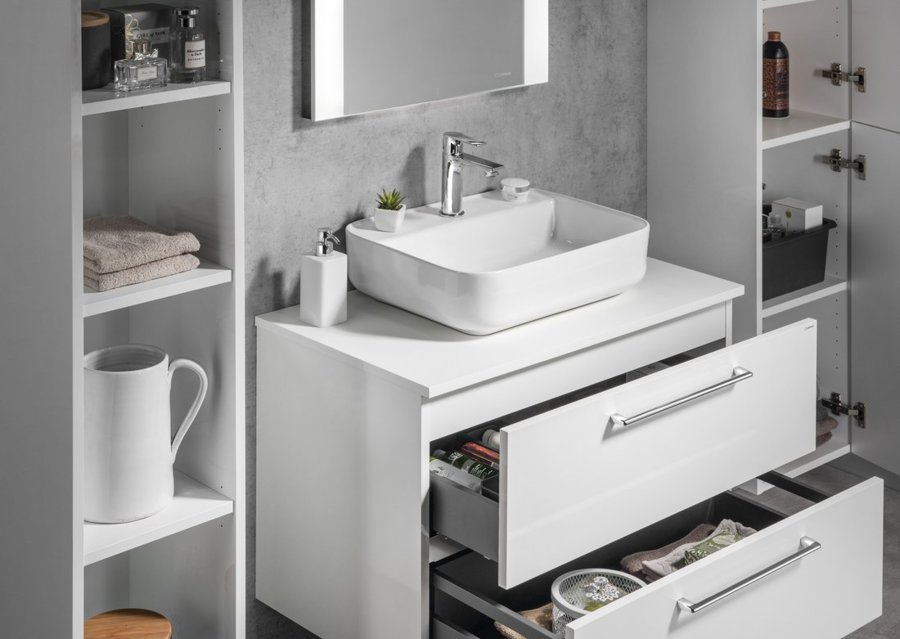 Nábytok je vybavený pojazdy zásuviek s pomalým dojazdom a systémom automatického dovretí zásuviek. Už žiadne hlučné zatváranie.