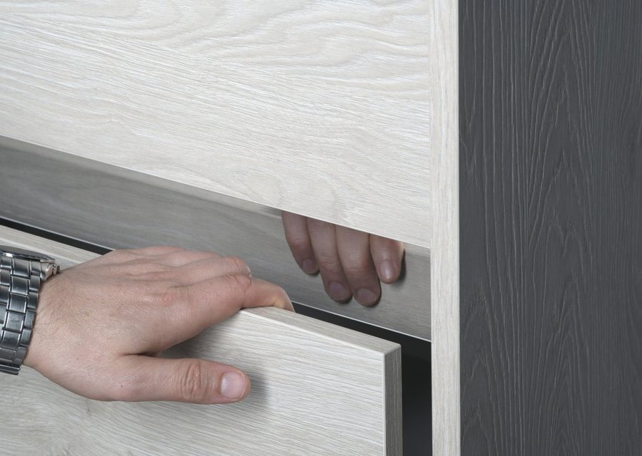 Nábytok je vybavený pojazdy zásuviek s pomalým dojazdom a systémom automatického dovretí zásuviek. Už žiadne hlučné zatváranie.