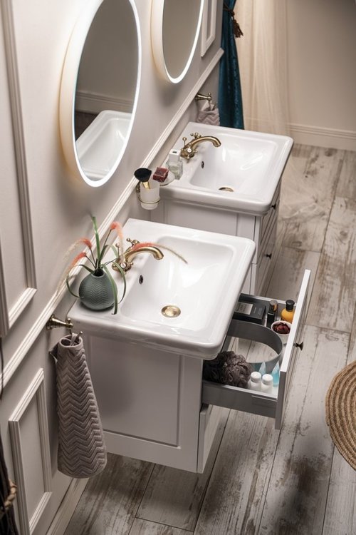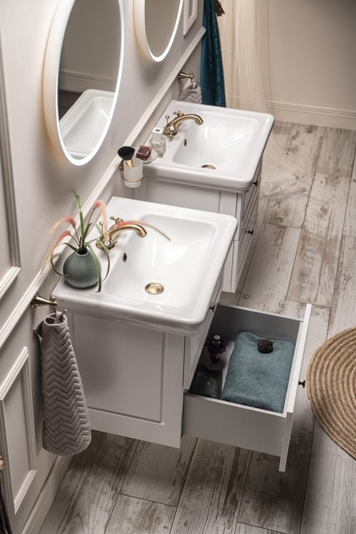 Nábytok je vybavený pojazdy zásuviek s pomalým dojazdom a systémom automatického dovretí zásuviek. Už žiadne hlučné zatváranie.