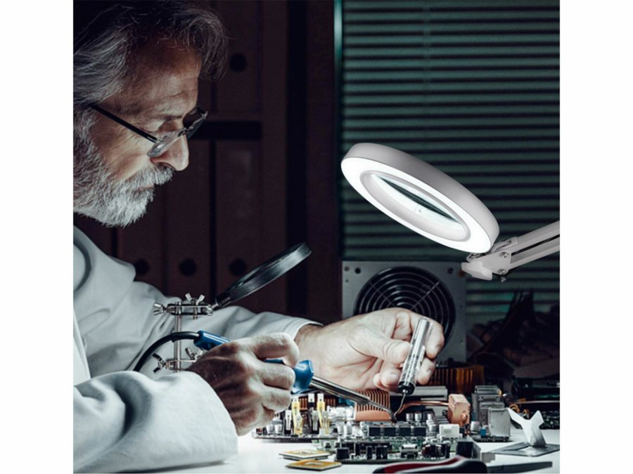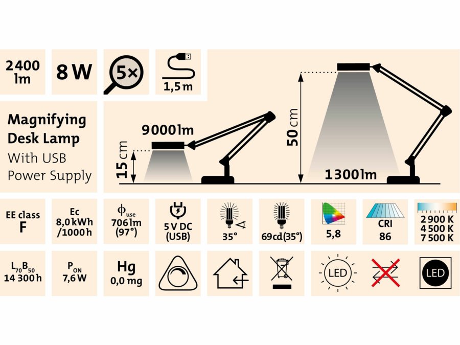 Lampa stolová s LED a lupou, 2400lm, USB napájanie, biela, EXTOL LIGHT