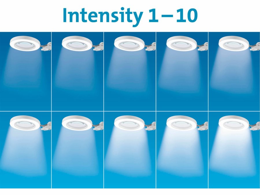 • 10 stupňov regulácie intenzity svetla