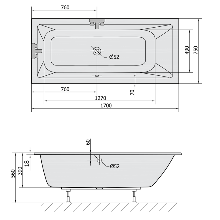 Vaňa má oproti štandardným vaniam výšku hrany okraja iba 18 mm. Pri obmurovanie tak pôsobí estetickejšie. Nemožno ju inštalovať s obkladovým panelom.